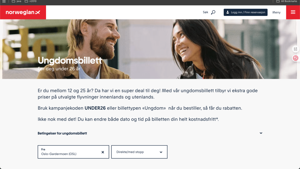 - google搜索 ‘ Norwegian ungdomsbillett’